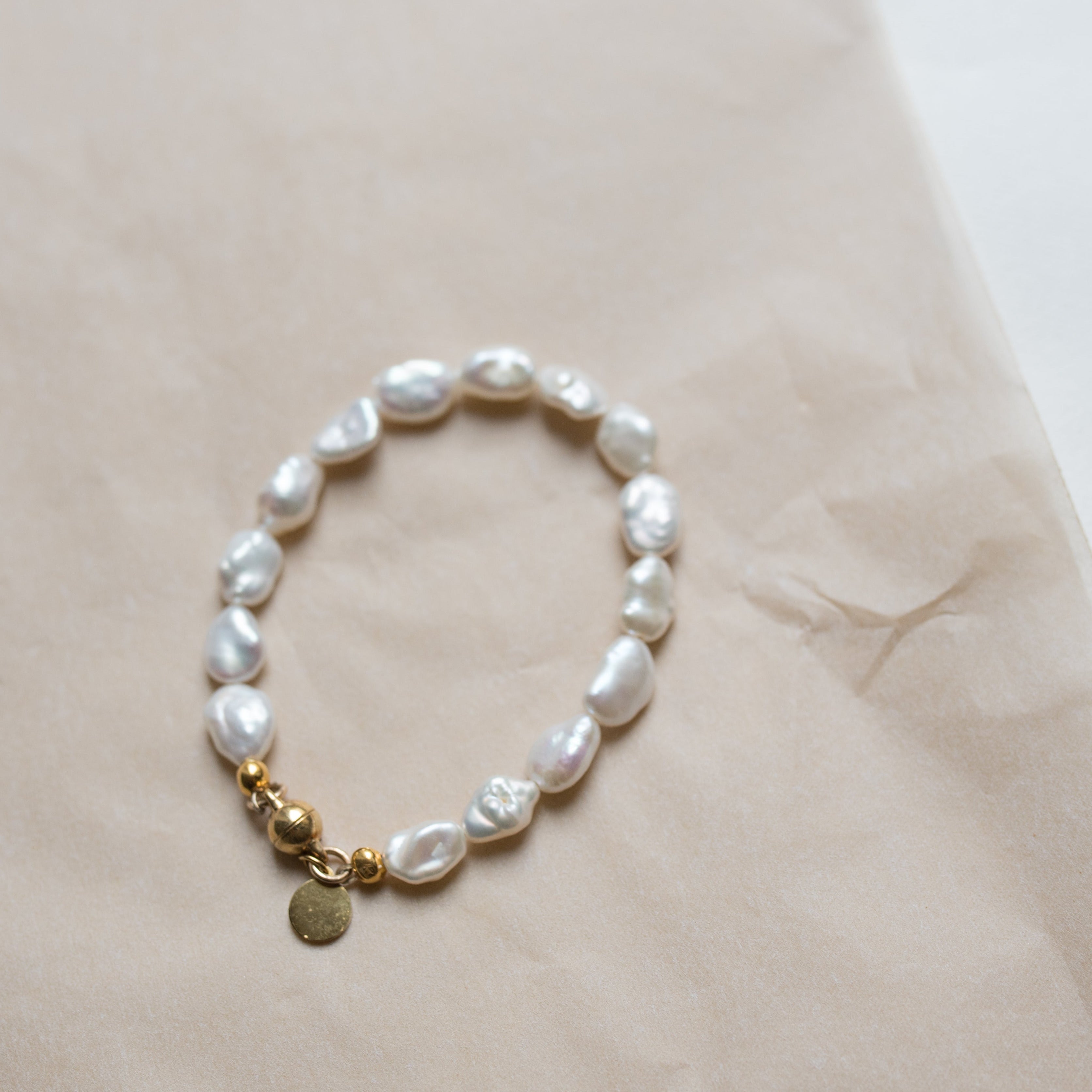 Zart, schlicht und voller Glanz – das Pearl Bracelet besteht aus feinen Süßwasserperlen, die durch ihre natürliche Form und ihren sanften Schimmer bestechen.